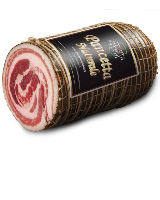 Pancetta di suino, sale, spezie, aromi naturali. Antiossidante E 301, conservanti E252, E250. Variante al pepe: contiene pepe.