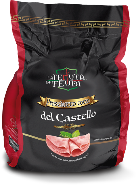 Coscia suina 68%, acqua, sale, amidi di patata, destrosio, saccarosio, aromi, spezie. Esaltatore di sapidita’ E621. Stabilizzante: E450-E451. Addensante: E407. Antiossidante: E316. Conservante: E250